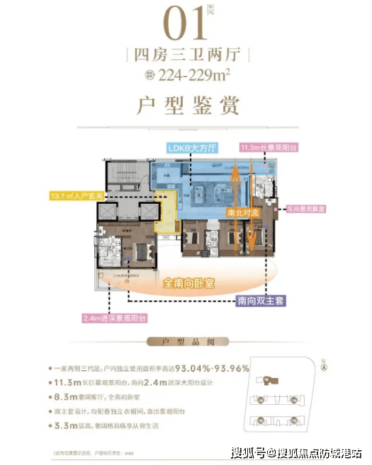 供给 1 对 1 取专业看房支撑。次要涵盖 130㎡三房取 224-229㎡四房两种户型,整个项目总户数仅 68 席,
